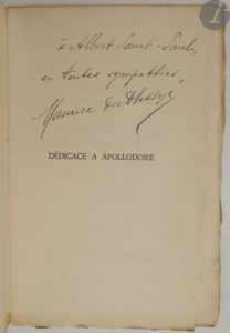 DU PLESSYS (Maurice). Dédicace à Apollodore. Paris : Léon Vanier, février 1891. — Plaquette …