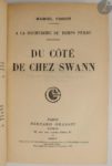 - DU CÔTÉ DE CHEZ SWANN. Paris : Bernard Grasset, 1914. — In-8, demi-chagrin brun à coins, dos à nerfs, tête dorée, second plat de couverture conservé (reliure du temps).
