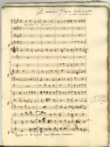 Fugues et Contrepoint (signé « Charles Gounod »). Quatre fugues à 4 parties, avec analyses ; une porte l’indication : « fait en une journée Mai 1836 ». Nombreux exercices de chant donné, contrepoint, contrepoint fleuri, fugues à 2 parties, etc. Ratures et corrections. En marge de la première fugue, remarques autographes de son professeur Anton REICHA : « une partie après avoir compté un certain nombre de pauses ne peut rentrer par un simple accomp. Elle doit énoncer soit en faisant le sujet ou bien en imitant une autre partie qui l’ait précédée. […] on évite autant que possible de syncoper avec une valeur plus courte ».