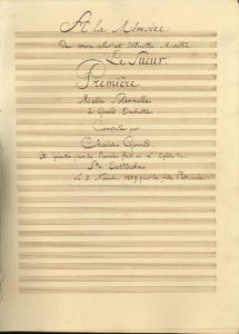 GOUNOD Charles. — MANUSCRIT MUSICAL autographe signé « Charles Gounod », Première Messe Solennelle, 1839 ; 133 pages in-fol. (35,5 x 26,5 cm), reliure cartonnée de l’époque (dos manquant).