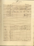 Manuscrit de travail de la partition d’orchestre, noté à l’encre brune sur papier à 24 portées, et présentant de nombreuses ratures et corrections, avec des mesures biffées, des grattages, et des révisions sur collettes. L’effectif requiert cinq solistes (soprano, deux ténors et deux basses), un chœur à cinq voix (1ers et 2ds Dessus, 1ers et 2ds Ténors, Basses-Tailles) et l’orchestre composé de flûtes, hautbois, clarinettes, bassons, 2 cors, trompettes, timbales, cordes, grand orgue et orgue de chœur.