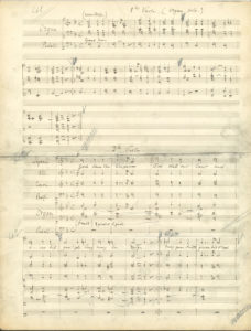 – le manuscrit autographe signé de la partition d’orchestre du Russian Hymn (« Festival Chorus. Full Score ») (titre et 14 p. à l’encre violette, les chœurs sont notés sans les paroles ; plus une copie portant le cachet de Georgina Weldon).