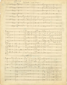 – le début d’une Messe dans le style du Plain Chant inachevée [CG 75], pour soli, chœur et orgue, dont ne subsiste que ce manuscrit donnant le Kyrie et le Christe (titre et 2 p. oblong in-4) ;
