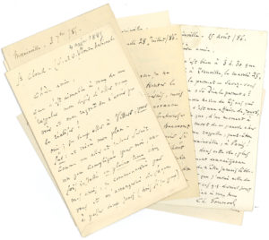 « notre société moderne meurt de cela : l’agitation à la place de l’activité. Voilà le vrai ; la fièvre a remplacé la vie ». 25 septembre, curieuse lettre : il a transmis « votre lettre à Mozart. Il a l’oreille est si merveilleuse qu’il la connaissait avant moi ; il vous avait entendu l’écrire ; je crois qu’il est le seul de cette force là. Le fait est qu’il en sait maintenant plus long que nous sur les propriétés du corps astral (ou sidéral, comme vous voudrez l’appeler)… Il n’ira plus séjourner l’été à Villers et les lettres de 1891 à 1893 deviennent des bulletins de santé : fatigue, bronchite, rhumes, troubles de la vue (une est dictée à sa fille Jeanne), ou des mots de nouvel an…