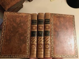 [LANTIER (Étienne François de)]. Voyages d’Antenor en Grèce et en Asie, avec des notions sur l’Égypte ; manuscrit grec trouvé a Herculanum traduit par E. F. LANTIER. A Paris, Chez F. Buisson, Imprim.-Libraire, an?IX (1801). 3 volumes in-8°, veau marbré, roulette dentelée florale encadrant les plats, dos lisse orné (reliure de l’époque).
