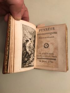 Réédition des Pensées philosophiques sous un autre titre qui précède l'ancien portant les mêmes adresse et date.