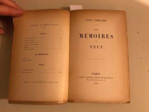 142.VERLAINE (Paul). Les Mémoires d’un veuf. Paris, Léon Vanier, Libraire-Éditeur, 1886. In-12 broché.