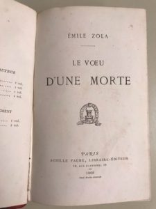 148.ZOLA (Émile). Le Vœu d’une morte. Paris, Achille Faure, Libraire-Éditeur, 1866. In-12, demi-basane rouge, dos lisse orné (reliure de l’époque).
