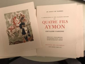 170.GAILLY DE TAURINES (Charles). La Merveilleuse et très plaisante histoire des quatre fils Aymon, chevaliers d’Ardenne. Paris, E´ditions de l’E´cureuil, s. d. [1944]. In-4° en feuilles, sous couverture illustrée, chemise et étui de l’éditeur.