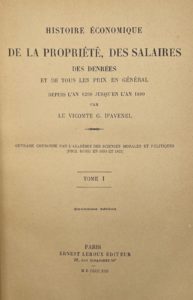 AVENEL (Georges d') — Histoire économique de la propriété, des salaires, des denrées et de tous les prix en général depuis l'an 1200 jusqu'à l'an 1800.