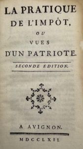 [BELLEPIERRE DE NEUVE-ÉGLISE (Louis-Joseph)] — La Pratique de l'impôt, ou Vues d'un patriote. Avignon, s.n.,