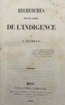 CLÉMENT (Ambroise) — Recherches sur les causes de l'indigence.