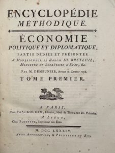 DEMEUNIER (Jean-Nicolas) — Encyclopédie méthodique. Économie politique et diplomatique.