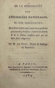 DUPONT DE NEMOURS (Pierre-Samuel) — De la périodicité des assemblées nationales, de leur organisation, de la forme à suivre pour amener les propositions qui pourront y être faites, à devenir des loix ; et de la sanction nécessaire pour