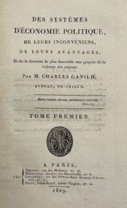 Opposé aux perspectives malthusiennes, Ganilh examine les diverses théories sur la formation, la circulation et la distribution de la richesse, sur le travail, la monnaie, le commerce et les colonies.