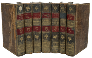 Paris, F. Buisson, 1803. 7 volumes in-8, veau raciné, roulettes dorées, dos lisse orné, torsade sur les coupes, tranches mouchetées (Reliure de l'époque). Unique édition de ce tableau très complet de la France dans les premières années du xixe siècle, publié par Herbin avec la collaboration de Peuchet, Sonnini, Delalauze, Gorsse, Amaury-Duval, Dumuys, Parmentier et Deyeux.