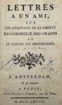 [LETROSNE (Guillaume-François)] — Lettres à un ami, sur les avantages de la liberté du commerce des grains et le danger des prohibitions. Amsterdam ; Paris, Desaint, 1768. – [GUÉRINEAU DE SAINT-PÉRAVI (Jean-Nicolas)]. Mémoire sur les