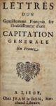 Cette critique classique de la capitation, établie par Louis XIV le 18 janvier 1695 pour financer la guerre de la Ligue d'Augsbourg, se compose de quatre lettres rédigées en janvier et février 1695. Selon l'auteur, cet impôt direct est injuste, il ruinera les sujets du roi au seul profit de guerres dispendieuses et sans objet.