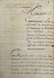 [MANUSCRIT] — Mémoire concernant la situation du Dauphiné, le commerce & industrie de ses habitants, la nature & qualité des fonds, la manière dont ils sont cultivés et leurs différentes productions. S.l.n.d. [vers