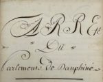 À la suite se trouvent quatre pièces à caractère principalement juridique : Arrêté du Parlement de Dauphiné. [14] ff. – Livre rouge – Livre blanc. [7] ff. – Edictum de donationibus extractum e Statuto Delphinali. [2] ff. – IV. Avocat. [10] ff.