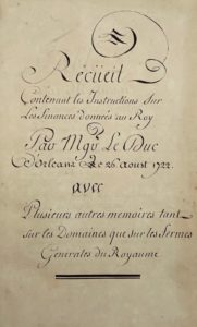 Tout ce détail, connu par ailleurs, est au demeurant exposé soigneusement dans la p. 1 de notre Mémoire. Tous les sujets furent passés en revue, et les textes étaient de qualité, rédigés par des spécialistes pris dans les bureaux de cette monarchie déjà administrative (Briquet, premier commis à la Guerre, pour les questions militaires ; Le Dran, chef de dépôt, pour les affaires étrangères, etc.) ; défilèrent ainsi les affaires intérieures et extérieures, militaires et diplomatiques, religieuses, financières... Et c'est précisément par les finances qu'elles commencèrent, le 26 août, à dix heures et demie du matin, comme si cette matière était, après la faillite du fameux Système de Law, la plus importante de toutes. La rédaction du texte lu à Louis XV est probablement due à Lefèvre d'Ormesson, intendant des finances.