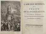 [MIRABEAU (Victor Riqueti, marquis de)] — L'Ami des hommes, ou Traité de la population. Nouvelle édition, augmentée d'une quatrième partie et de sommaires. S.l.n.n. [Avignon],