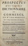 MORELLET (André) — Prospectus d'un nouveau dictionnaire de commerce.
