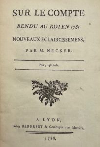 Sur le Compte rendu au roi en 1781. Nouveaux éclaircissements. Lyon, Bernuset, 1788. In-8, broché, couverture muette de l'époque, en partie non coupé. Édition parue l'année de l'originale. Dos un peu usé.