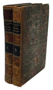 Reliures frottées et usagées, deux coiffes rognées, mors fendus, mouillure claire dans le premier tome.