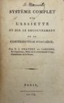 Description détaillée : 1. CHAUBRY DE LAROCHE (François-Jean). Système complet sur l’assiette et sur le recouvrement de la contribution française. Paris, s.n., An IX (1801). (1) f., iv-37 p.