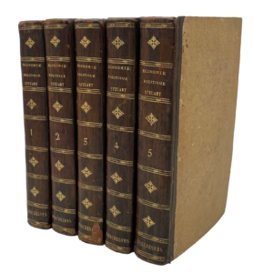 Paris, Didot l'aîné, 1789-1790. 5 volumes in-8, demi-veau brun, dos lisse orné, supralibris en pied, tranches jaunes (Reliure de l'époque).Première édition française de cet ouvrage précurseur, traduite par Étienne de Senovert.