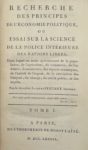 STEUART (James Denham) — Recherche des principes de l'économie politique, ou essai sur la science de la police intérieure des nations libres.