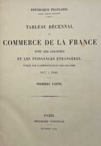 TABLEAU — décennal du commerce de la France avec ses colonies et les puissances étrangères, publié par l'Administration des Douanes. [1837-1851].