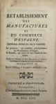 ULLOA (Bernardo de) — Rétablissement des manufactures et du commerce d'Espagne.