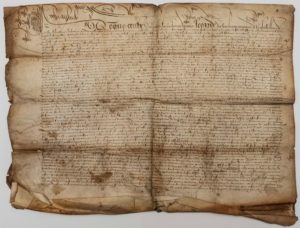 ORNE. 1523. Châtellenie de BELLÊME. Grand parchemin (46 x 62 cm). Devant le Garde des Sceaux de la Châtellenie de Bellesme, Héritages d'une maison à Bellesme, fait le 18 Avril 1523 pour Jehan Busson et Catherine Heurtault sa femme. La Seigneurie de Bellême est le domaine possédé par la famille de Bellême du Xème siècle à l'an 1113. Située aux confins du duché de Normandie et du comté du Maine, elle s'étalait à son apogée du Passais à l'ouest au Saosnois à l'est en passant par la Campagne d'Alençon et une partie du Perche. Outre sa capitale Bellême, ses villes principales étaient Sées, Alençon et Domfront..