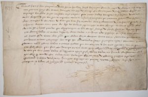 CORRÈZE. 1575. BAS-LIMOUSIN. Pièce en parchemin (20 x 30 cm). ALASSAC, Bas pays de limousin (ALLASSAC 19), 22 Janvier 1575. Texte en français. Procuration donnée par Sire Pierre VERDIER, Bourgeois et Marchand d'ALLASSAC, à sire Etienne JOUY, marchand de TULLE, pour recevoir de Claude COTHEREAU, receveur des tailles au Bas Limousin, certaines sommes dues audit procurant pour prêt fait au Roi.