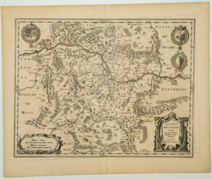 CARTE XVIIe du Pays MESSIN. Arrondissement de METZ (57)  «Territorium METENSE, Auctore AB. FABERT Consule urbis Metensis. Le Pais MESSIN.» Amsterdam chez Johanne JANSSON (c. 1650) (47 x 57 cm) Etat A-. Texte au verso.