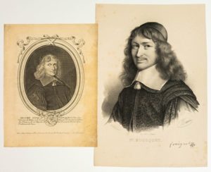 Nicolas FOUCQUET, Chevalier, Vicomte de MELUN et de VAUX, Ministre d'Etat, Surintendant des Finances (Paris 1615 - Pignerol 1680). 2 Gravures: Gravé par Larmessin en 1663, chez Bertrand, rue St Jacques et grande Litho de Delpech (36,5 x 25 cm)