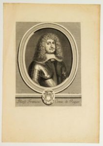 Blaise François Comte de PAGAN, Seigneur de l'Isle, Conseiller du Roi, Gouverneur pour Sa Sainteté du Château et Baronnie de SORGUES (Vaucluse) (Vaucluse 1603 - Paris 1665). Gravure aux armes de Jacques LUBIN Sculp. (40 x 28 cm)