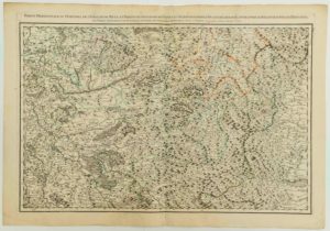 CARTE de 1699: «Partie méridionale du Temporel de l'Evêché de METZ, et parties des Bailliages de NANCY et Allemand, dans le Duché de LORRAINE, divisés par Châtellenies, Offices, Prévôtés, les terres adjacentes de Blanmont, de Salme, de Sarbourg, de Bitche, &. Par le Sieur JAILLOT, Géographe ordinaire du Roy, 1699.» (Nancy, Lunéville, Dieuze, Blamont, Phalbourg,...) (53 x 77 cm) Etat B