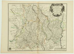 LYONNAIS, FOREZ. CARTE XVIIIe: «Les Provinces et Gouvernement du LYONNAIS, FOREZ ET BEAUJOLAIS, de la Basse et Haute AUVERGNE, et du BOURBONNAIS. Nouvellement dressé par Nicolas De FER Géographe. (c. 1712) (Lyon, Moulins, Clermont, Feurs, Beaujeu, St Flour, Thiers,...) (51,5 x 70,5) Etat B+