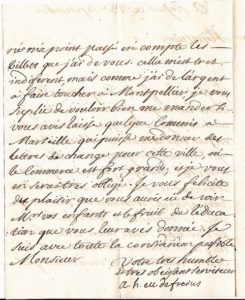 Cardinal de FLEURY (André-Hercule de) Lodève 1653 - Paris 1743 - Cardinal, Évêque de FRÉJUS 1698 à 1715, Précepteur de LOUIS XV, Ministre d'État, Surintendant des Postes - Lettre signée “A.H. Évêque de FRÉJUS”, à FRÉJUS (83) 23 Septembre 1713: “Monsieur, Je suis bien fâché de quitter Paris dans le temps que vous deviez y arriver, et je ne l'ai pas été moins de ne pas vous trouver à MARSEILLE où j'ai demeuré un jour avec Mr le Maréchal de TESSÉ... Mr CROSAT vous aura dit sans doute qu'il ne m'a point passé en compte les billets que j'ai de vous. Cela m'est très indifférent, mais comme j'ai de l'argent à faire toucher à Montpellier, je vous supplie de vouloir bien me mander si vous avez laissé quelque commis à Marseille qui puisse me donner des Lettres de Change pour cette ville, où le commerce est fort grand...” - 2pp in-8°.