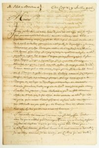 SAINT-DOMINGUE 1736. PELET Armateur de BORDEAUX ; Longue lettre écrite, à Mr PELET Armateur et Négociant à BORDEAUX, du CAP (St Domingue) le 9 Juillet 1736. 4pp in-folio (Il manque le dernier feuillet). Il essaye de vendre ses barriques de vins à bon prix mais il est obligé de se contenter de 150 livres car dans cette saison les vieux vins tournent (au vinaigre). «Pour les nouveaux vins tous ceux à qui je l'ai fait gouter m'ont dit que ce n'étaient que des vergeurs et aucun n'en a voulu, de sorte que sans un Vaisseau Négrier qui m'en a pris 8 barriques à 150 Livres le tonneau, je serai encore à en avoir commencé la vente... Il lui réserve du Fret de sucres pour son Vaisseau LE THÉTIS...»