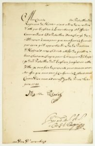 MARIE ELISABETH Princesse Royale de Hongrie, de Bohème et des Deux Siciles, Archiduchesse d'Autriche & Gouvernante générale des PAYS BAS - Lettre signée à son Cousin le Duc D'AREMBERG (adresse). BRUXELLES 20 Juin 1741 - Demande que la Province d'Haynaut fournisse au Bataillon du Régiment de HEISTER, ayant ordre de se rendre d'Ath par Enghien à Luxembourg, onze chariots attelés de quatre bons chevaux. - 1p in-folio - Sceau sous papier.