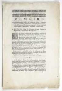 SEINE MARITIME. 1744. SAINT PIERRE DE MANNEVILLE (76). PROCÈS. «Mémoire pour Messire Pierre AUBERY DE BELLEGARDE, Ecuyer, Conseiller du Roy, Correcteur ordinaire de la Chambre des Comptes, Aydes et Finances de Normandie, Seigneur & Patron Honoraire de SAINT PIERRE DE MANNEVILLE (76), Défenseur et demandeur. Contre le Prieur & Religieux de SAINT GEORGES DE BOSCHERVILLE...» - A qui appartient les Droits honorifiques de la Paroisse de SAINT PIERRE DE MANNEVILLE ?  - de l'Imprimerie de Jean LAMESLE, Pont Saint Michel, au Livre royal. 1744 ; 18pp gd in-folio.