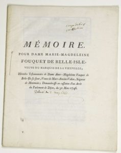 FOUCQUET DE BELLE-ISLE. 1746. “Mémoire pour Dame Marie-Magdeleine FOUQUET DE BELLE-ISLE, veuve …