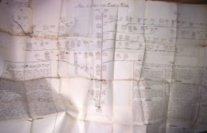 SAVOIE. Arbre généalogique XVIIIe S., de la Famille THIBALLIERS (ou THIBALIER), originaire de Savoie. Cachet du Cabinet d'HOZIER. Manuscrit sur une très grande feuille (150 cm x 100 cm) montrant l'arbre de Ligne de la Famille, avec Copie des lettres de Naturalité accordées par François 1er, au mois de décembre 1533, à Claude THIBALLIER originaire de Savoie. «Julles de Thiballier, Ecuyer, Sieur de Tissoc, Premier Gentilhomme du Duc de Savoie, épousa en 1494, Melle Philiberte de Baudy...»