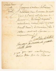 PRINCESSE DE TALMONT. Billet signée du Maréchal Duc de BELLE-ISLE, avec quelques mots de sa …