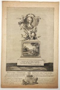 HÉRAULT. GRAVURE de Messire Thomas Ignace de VANIÈRE, neveu du Grand VANIÈRE, né au Château …