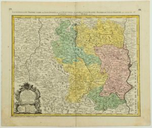 CARTE de 1762: «La Généralité propriétaire de LYON en ses 5 Élections, savoir de Lyon, Roanne, Montbrison, Villefranche, et celle de St Étienne, soins des héritiers d'HOMAN, 1762.» (54 x 64 cm) État A